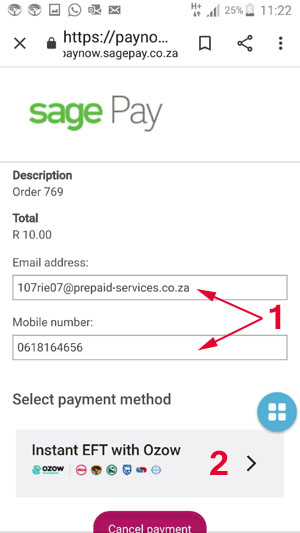Mobile Number, as these will be used by Prepaid-Services and Netcash (SagePay) to send you notifications about your payment. You may temporarily change these